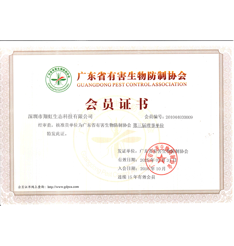 廣東省有害生物防制協(xié)會(huì)會(huì)員證書(shū)